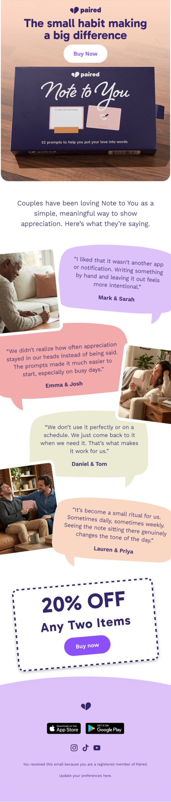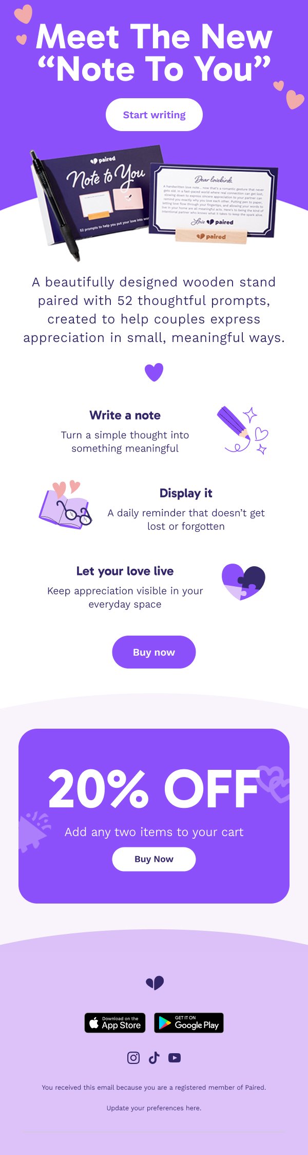 Send something meaningful with Paired's "Note to You" — a heartfelt way to connect. Get 20% off when you buy any two items!