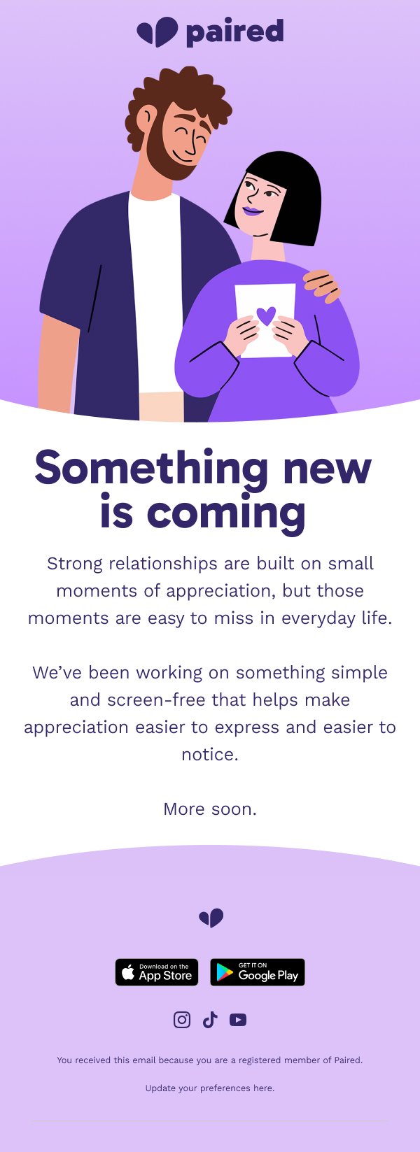 Paired is created for busy couples. Because of that, Jaiden™ doesn’t believe their emails should be long and drawn out.